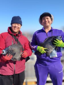 釣った魚を捌けない方のためにエラ取りや内臓の処理は有料となりますが、係員がさせていただきます。