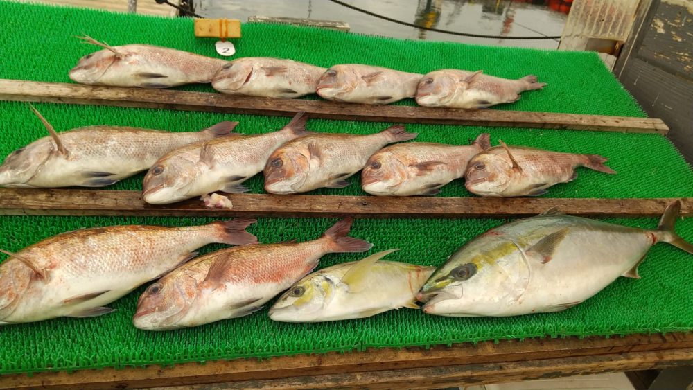 べた底での真鯛の釣果も本日は多く、あすもスタートは底で棚を合わせてみてください。