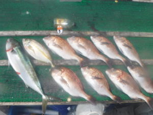 真鯛3 クロソイ1 ハマチ1 カワガレイ1