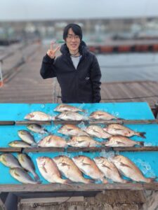 マダイ9 イサギ6 スズキ1 カンパチ1